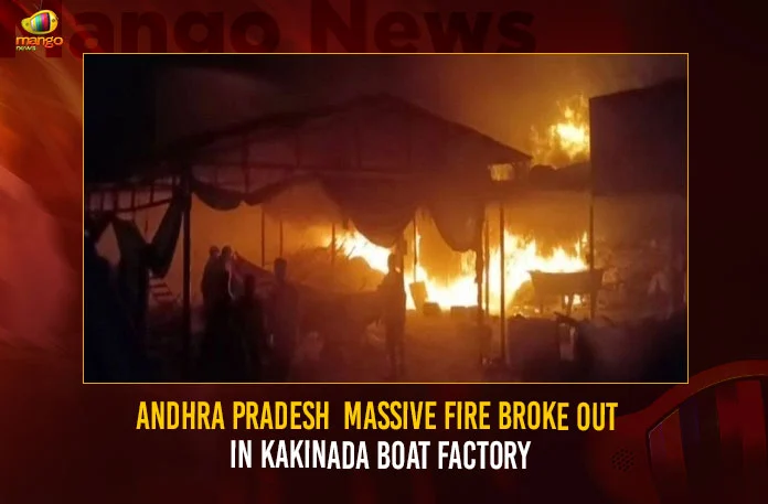 In Andhra Pradesh’s Kakinada region, a massive fire broke out in a boat manufacturing factory.