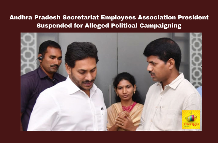 Andhra Pradesh Secretariat Employees Association President Suspended for Alleged Political Campaigning, Andhra Pradesh Secretariat Employees, Association President Suspended, Alleged Political Campaigning, YSRCP, Elections, Campaign, Transfer, Suspension, Employees, JAC, General Elections, Lok Sabha Elections, AP Live Updates, Andhra Pradesh, Political News, Mango News