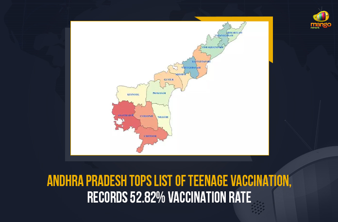 The Telugu state, Andhra Pradesh topped the list of first dose vaccine administration to teenagers between 15 years and 18 years old, in India.