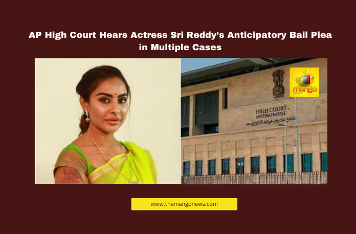 Amaravati: The Andhra Pradesh High Court on Monday heard anticipatory bail petitions filed by actress Sri Reddy in connection with six cases registered against her in various police stations. The cases involve allegations of posting obscene content on social media targeting Chief Minister N. Chandrababu Naidu, Deputy CM Pawan Kalyan, Ministers Nara Lokesh, Vangalapudi Anitha, and their family members.