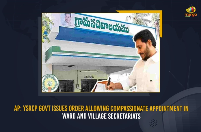 AP YSRCP Govt Issues Order Allowing Compassionate Appointment In Ward And Village Secretariats, AP Govt Issues Orders,Village and Ward Secretariats,Compassionate Appointments in Village and Ward Secretariats,Mango News,Mango News Telugu, AP CM YS Jagan Mohan Reddy, YS Jagan News And Live Updates, YSR Congress Party, Andhra Pradesh News And Updates, AP Politics, Janasena Party, TDP Party, YSRCP, Political News And Latest Updates