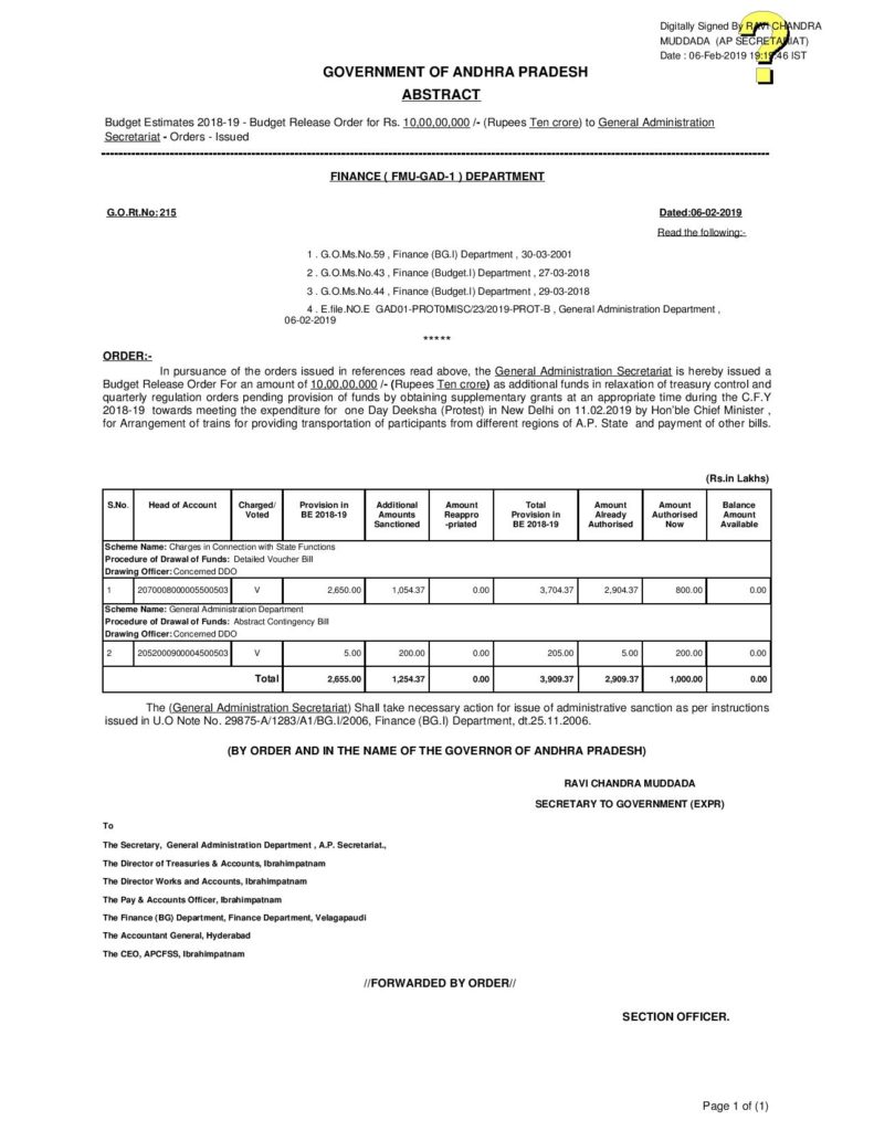 The Government allocated the amount, on the 6th of February, and issued a Budget Release Order (BRO) for the same. In the issued statement, an amount of Rs. 8 crores was allocated for the State’s functions and only Rs. 2 crores were given for the protest.