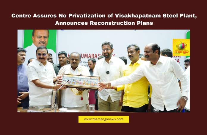 Centre Assures No Privatization of Visakhapatnam Steel Plant, Announces Reconstruction Plans, Visakhapatnam Steel Plant, VSP Privatization, Steel Industry India, AP Steel Industry, Steel Minister Kumaraswamy, VSP Reconstruction, Modi Steel Production Target, VSP Financial Crisis, Trade Unions VSP, AP MPs on VSP, Andhra Pradesh, AP Live Updates, AP Politics, Political News, Live Updates, Breaking News, Headlines, Live News, Mango News
