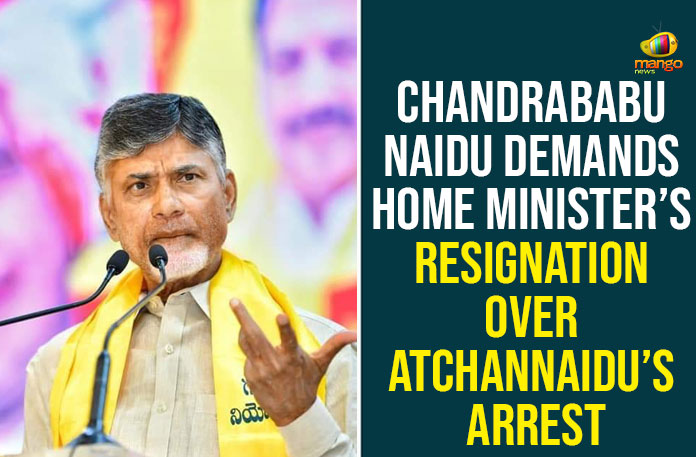 Nara Chandrababu Naidu, the President of the Telugu Desam Party (TDP,) on the 12th of June, demanded the resignation of M.Sucharitha, the Home Minister of A.P.
