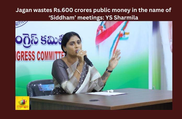 YS Sharmila said Rs. 90 crores were spent by the government on each and every ‘Siddham’ meeting. She alleged that Rs.600 crores worth public money is spent on these meetings.