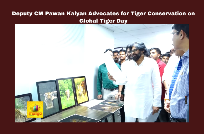 Vijayawada: On Global Tiger Day, Deputy Chief Minister and Minister of Environment and Forests, Mr. Pawan Kalyan, underscored the importance of protecting tigers to ensure the preservation of forests and ecological balance. Speaking at a program held at Aranya Bhavan in Mangalagiri on Monday, he highlighted the state’s commitment to taking special measures for tiger conservation. A poster commemorating Global Tiger Day was also released during the event.