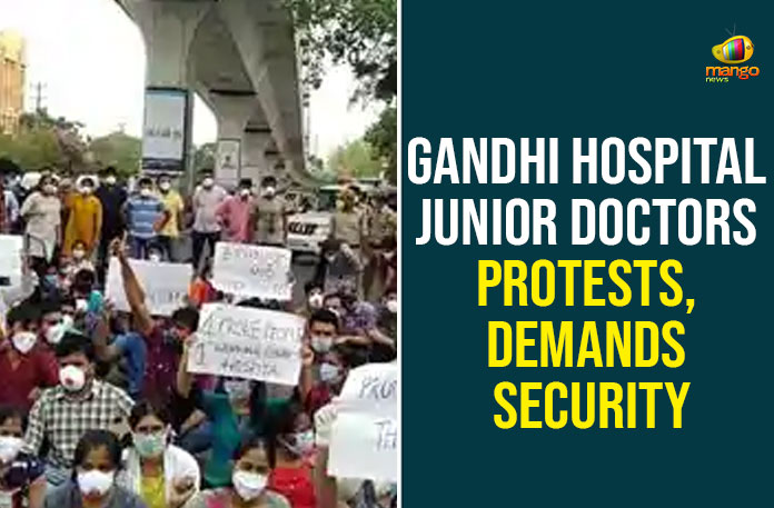 Junior doctors of Gandhi Hospital, designated for the treatment of the Novel Coronavirus staged protest against the management with a demand of security for them.