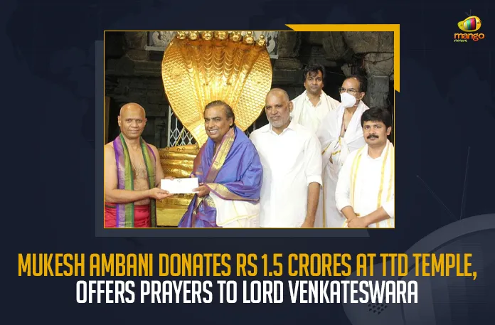 Businessman Mr. Mukesh Ambani, the Chairman of Reliance, offered Rs. 1.5 crores at the shrine of Lord Venkateshwara, at the Tirumala Tirupati Devasthanam (TTD.)