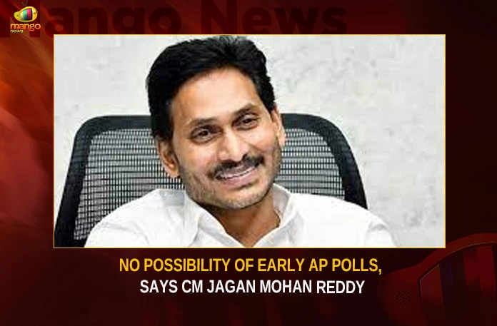 No Possibility Of Early AP Polls Says CM Jagan Mohan Reddy,No Possibility Of Early AP Polls,CM Jagan Mohan Reddy,CM Jagan on Early AP Polls,Mango News,Amid early poll talks,Jagan not to go for early elections,2024 Andhra polls,No early polls or Cabinet reshuffle,Andhra CM Jagan rules,AP CM YS Jagan Mohan Reddy,AP CM YS Jagan Mohan Reddy Latest News,AP CM YS Jagan Mohan Reddy Latest Updates,AP CM YS Jagan Mohan Reddy Live News,Andhra Pradesh News and Live Updates,Andhra Pradesh Latest News,Andhra Pradesh News,2024 Andhra polls Latest News,2024 Andhra polls Latest Updates
