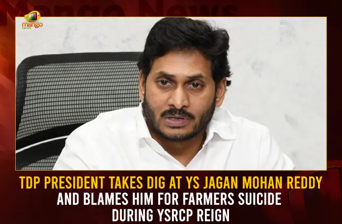 TDP President Takes Dig At YS Jagan Mohan Reddy And Blames Him For Farmers Suicide , TDP President Takes Dig At YS Jagan Mohan Reddy, TDP President, YS Jagan Mohan Reddy, TDP President Comments on YS Jagan Mohan Reddy, Mango News, Mango News Telugu, TDP President Chandrababu Naidu, AP CM YS Jagan Mohan Reddy, TDP Chief Chandrababu Naidu, AP CM YS Jagan Latest News And Updates, TDP President News And Live Updates, TDP President