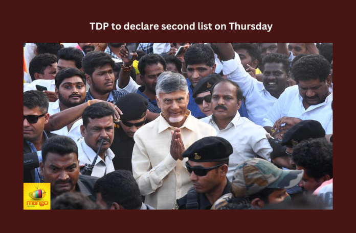 Vijayawada: Telugu Desam Party (TDP) is likely to declare the second list of candidates on Thursday. Sources said that party chief N Chandra Babu Naidu along with general secretary Nara Lokesh will declare the second list with 17 Lok Sabha and 50 MLA seats.
