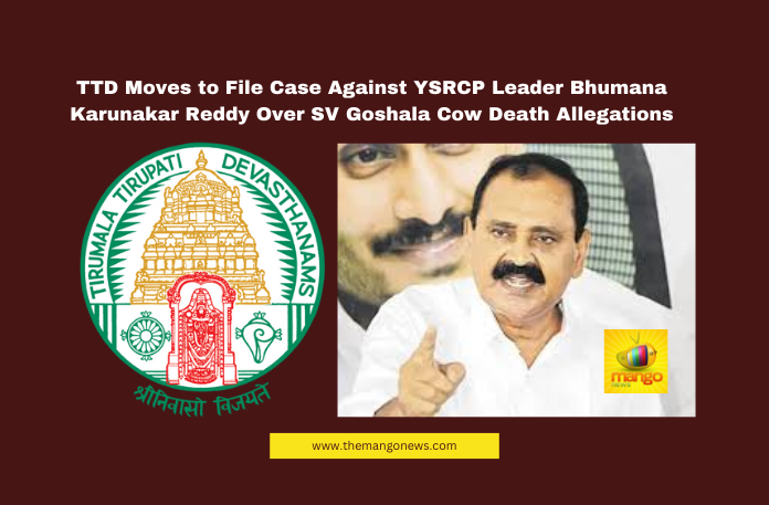 Tirumala: The Tirumala Tirupati Devasthanams (TTD) has initiated steps to take legal action against YSR Congress Party (YSRCP) leader and former TTD Chairman Bhumana Karunakar Reddy for allegedly spreading false information regarding cow deaths at the SV Goshala.