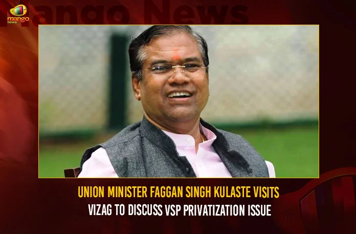 Mr. Faggan Singh Kulaste, the Union Minister of State for Steel and Urban Development, reached Visakhapatnam. He arrived in a special flight to participate in many programs organized in Visakhapatnam. During the visit, Mr. Faggan Singh Kulaste would meet with the management of the steel plant and would review the latest situation amid the VSP Privatization Issue.