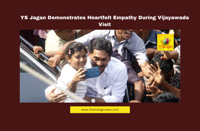 Vijayawada: In a touching display of compassion, former Chief Minister and YSR Congress Party President YS Jagan showcased his deep connection with the people during his recent visit to Vijayawada. After a series of official engagements, including a visit to the former MLA of Gannavaram, Vallabhaneni Vamsi, and a brief stop at Gandhi Nagar District Jail on his way to Tadepalli, an unforgettable moment unfolded.