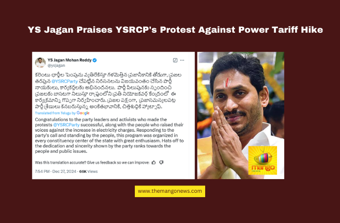 Tadepalli: YSR Congress Party (YSRCP) President and former Chief Minister YS Jagan Mohan Reddy commended the party leaders, workers, and the public for their strong stand against the recent hike in electricity charges. The protests, conducted across all constituency headquarters in Andhra Pradesh, highlighted the party’s commitment to safeguarding public interests.