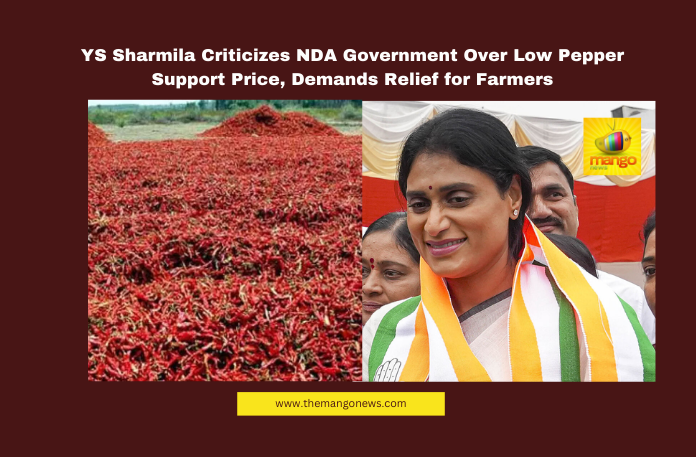 Amaravati: Andhra Pradesh Congress Committee (APCC) president YS Sharmila has strongly criticized the NDA government for its inadequate support price of Rs. 11,000 for pepper, calling it insufficient to uplift farmers. In a post on ‘X’ (formerly Twitter) on Sunday, Sharmila accused the government of “putting pepper in the eyes of farmers” instead of standing by them during their struggles.
