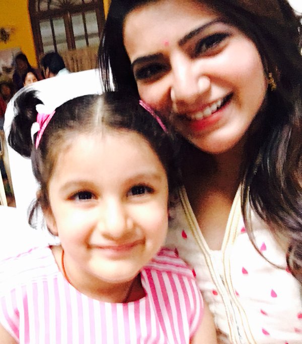 Samantha took to her Twitter handle and shared a cute photograph. She also wrote, “Sitara❤️we have a play date but she wants me to bring my baby along .Now how to arrange for that by Saturday ?.”