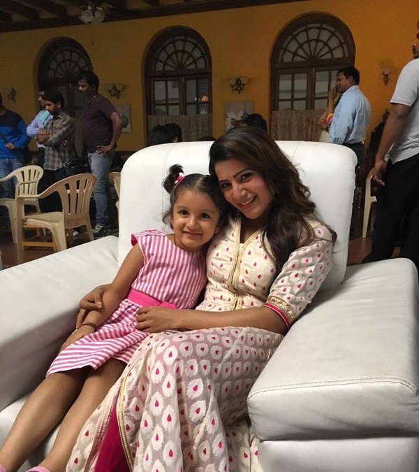 Hyderabad: It is play date for actress Samantha Ruth Prabhu. Mahesh Babu and Samantha starrer Brahmotsavam is progressing well with a rapid pace. And Mahesh’s little princess, Sitara sizzled on the sets of “Brahmotsavam”. The actress had a play date with the adorable daughter of Mahesh and Namrata on the sets.