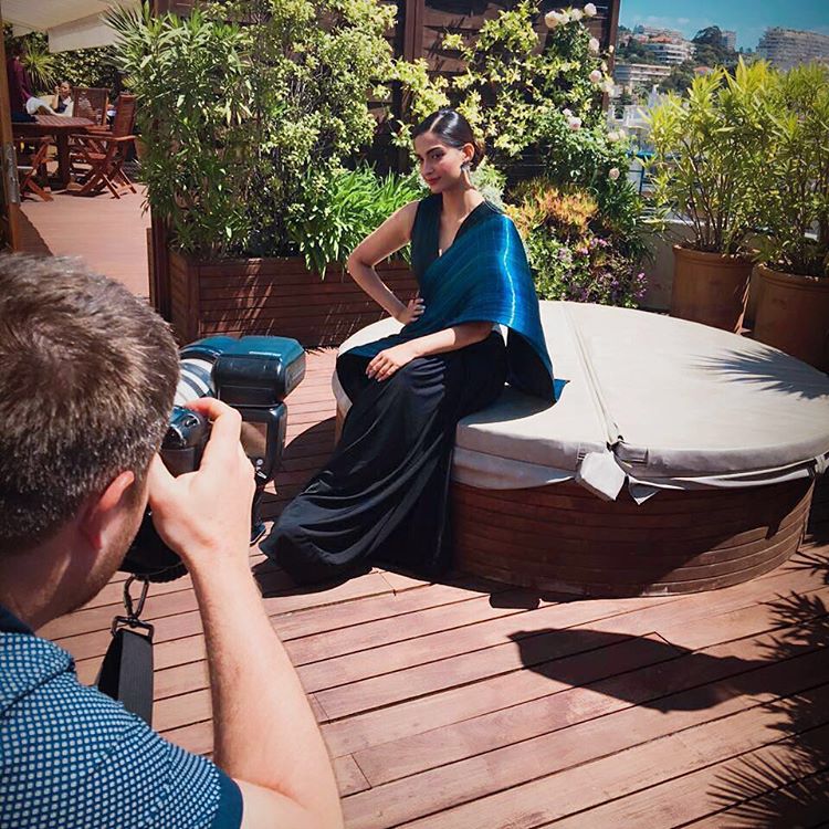 The fashionista experimented with a new look for the press meet at the Festival De Cannes wearing a black and blue saree by Rimzim Dadu. She finished her look with jewellery by Suhani Pittie and a neat hairdo. After making stellar appearances at the Cannes, her fans are eager to see what Sonam had in store for us this year.