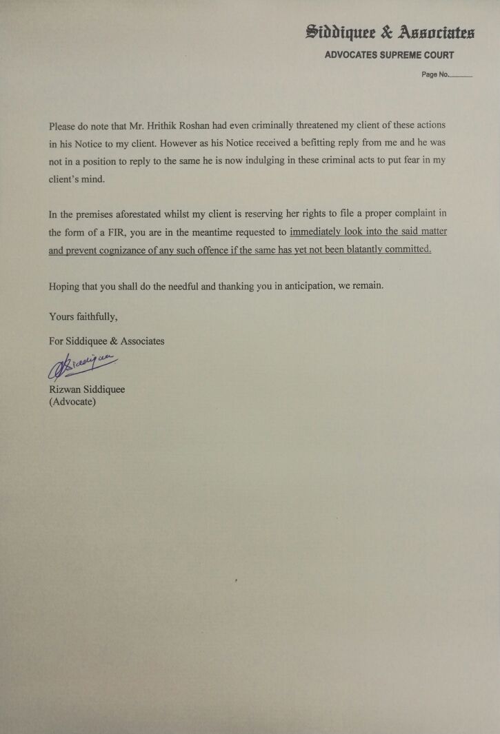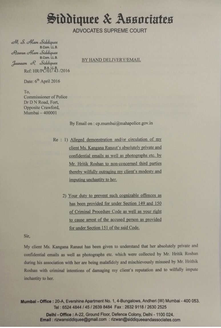 The lawyer of Kangana, Rizwan Siddiquee accused Hrithik for damaging her reputation by “outraging (his) client’s modesty” and “imputing unchastity.” In the letter, the advocate said that Hrithik criminally threatened her and also asked the police commissioner to look into the matter.