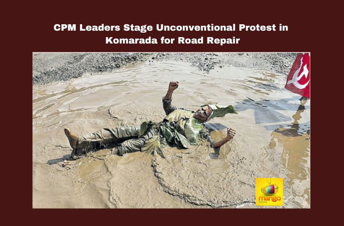 CPM Leaders Stage Unconventional Protest In Komarada For Road Repair,CPM Leaders Stage Unconventional Protest,Protest In Komarada For Road Repair,CPM Leaders Protest For Road Repair,Road Repair,Komarada,CPM Leaders,Unconventional Protest, Infrastructure Issues, Vaikapa government,Political Controversy, TDP,YSRCP,Pawan Kalyan,Jana Sena,AP Live Updates, AP Politics, Political News,Mango News