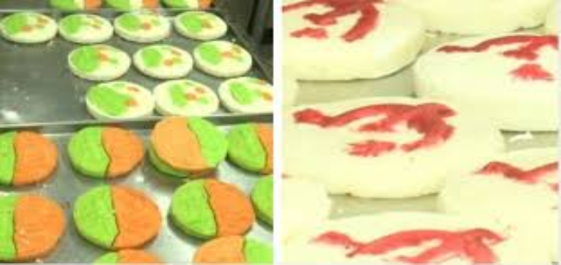 Mr. Haldar made several colourful sweets with different badges and party symbols. Some of the sweets which have the colours of orange and green and a lotus sign represent the Bharatiya Janata Party (BJP.)
