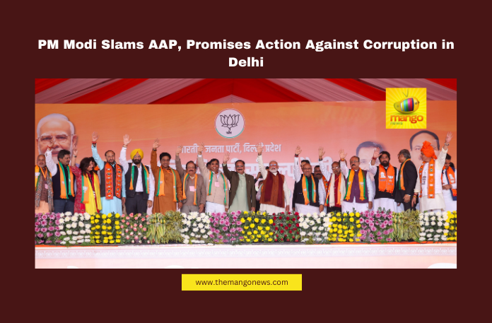 PM Modi Slams AAP, Promises Action Against Corruption in Delhi, Narendra Modi, AAP, Delhi Elections, BJP, Housing for Poor, Corruption, CAG Report, Yamuna Pollution, Arvind Kejriwal, Assembly Polls, Mango News