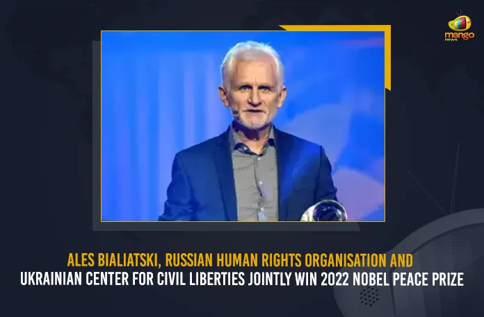 Ales Bialiatski Russian Human Rights Organisation And Ukrainian Center for Civil Liberties Jointly Win 2022 Nobel Peace Prize, Belarus Advocate Ales Bialiatski Win Nobel Peace Prize, Russia's Memorial Win Nobel Peace Prize, Civil Liberties Win Nobel Peace Prize, Ales Bialiatski, Russia's Memorial, Ukraine's Center for Civil Liberties, Mango News, Mango News Telugu, Nobel Peace Prize, Nobel Peace Prize 2022, Nobel Peace Prize Latest News And Updates, 2022 Nobel Peace Prize, Ukrainian Center for Civil Liberties, Ales Bialiatski Russian Human Rights Organisation