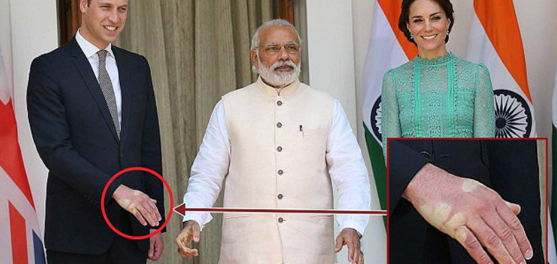 Handshake is a considered a good sign of strong leadership. Here is a evidence of a picture in which Prince Williams suffered hand impression of PM Modi when they shook hands.