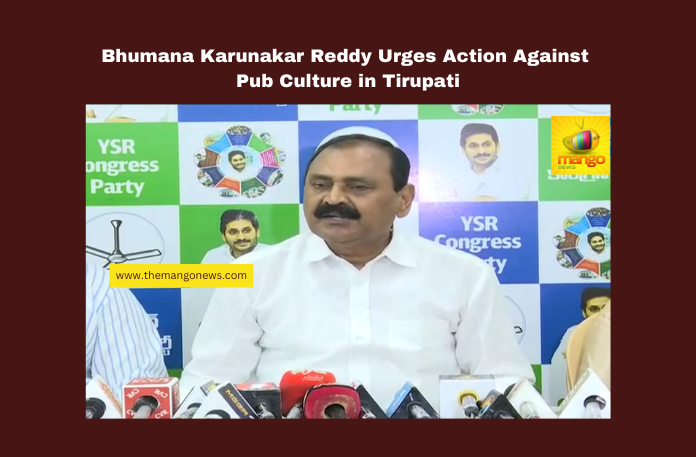 Bhumana Karunakar Reddy Urges Action Against Pub Culture in Tirupati, Andhra Pradesh News, anti-social activities, Bhumana Karunakar Reddy, drugs in Tirupati, liquor violations, temple city concerns, temple town sanctity, Tiruchanur issues, Tirupati pub culture, YSRCP, Andhra Pradesh, AP Live Updates, Live Updates, Breaking News, Headlines, Live News, Mango News