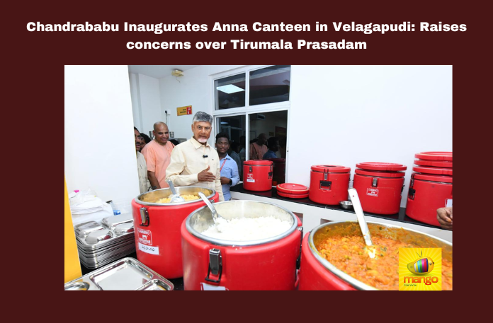 Chandrababu Inaugurates Anna Canteen in Velagapudi: Raises Concerns Over Tirumala Prasadam, Chandrababu Inaugurates Anna Canteen in Velagapudi, Raises Concerns Over Tirumala Prasadam, Tirumala Prasadam, Anna Canteen in Velagapudi, Andhra Pradesh News, Chandrababu Naidu, Velagapudi, Anna Canteen, Tirumala Desecration, Latest Anna Canteen News, CM Chandrababu Naidu, Pawan Kalyan, AP Live Updates, AP Politics, Political News, Live Updates, Breaking News, Headlines, Live News, Mango News