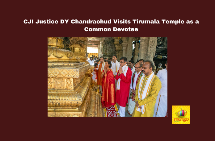 Tirumala: Chief Justice of the Supreme Court (CJI) Justice DY Chandrachud, along with his family, visited the sacred Tirumala temple on Sunday morning. They were warmly welcomed by TTD (Tirumala Tirupati Devasthanams) Additional Executive Officers J. Shyamala Rao and Ch. Venkaiah Chaudhary. Upon arrival, Justice Chandrachud and his family first bowed before the Dwajasthambam (flagpole) and then offered prayers at the shrine of Lord Venkateswara.