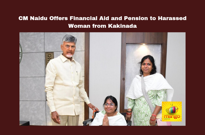 CM Naidu Offers Financial Aid and Pension to Harassed Woman from Kakinada, CM Naidu Offers Financial Aid, Pension to Harassed Woman from Kakinada, Chandrababu Naidu, Financial Assistance, Kakinada, YSRCP, Humanitarian Aid, Legal Support, Andhra Pradesh, Women Empowerment, Healthcare Support, AP Live Updates, AP Politics, Political News, Mango News