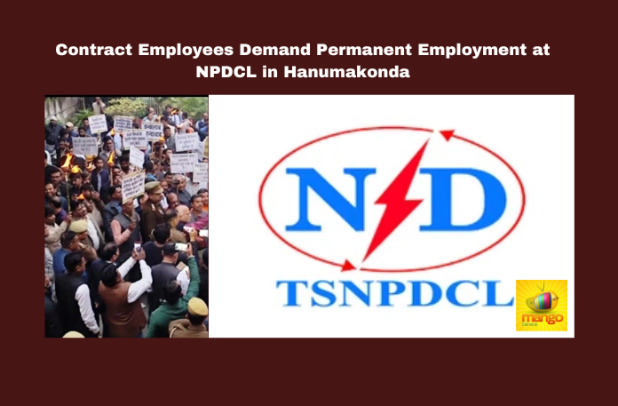Warangal: In a significant protest on Thursday, contract employees gathered for a Maha Dharna in front of the NPDCL office in Hanamkonda, demanding the conversion of their contractual positions into permanent employment based on their qualifications. The rally, organized by the Telangana Vidyuttu Artisans Conversion ICASA, commenced at Hanumakonda Public Garden and made its way to Vidyuttu Bhavan in Nakkalagutta, where the participants camped on the road.