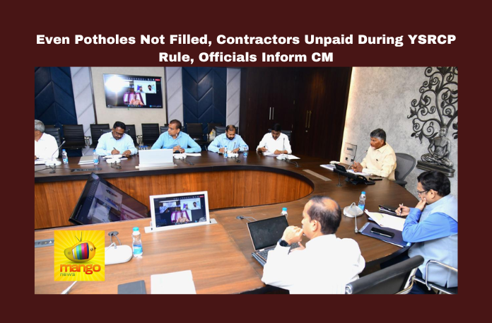 Even Potholes Not Filled Contractors Unpaid During YSRCP Rule Officials Inform CM,Even Potholes Not Filled,Contractors Unpaid During YSRCP Rule Officials Inform CM,otholes Not Filled Contractors Unpaid During YSRCP Rule,Contractors,YSRCP Rule,YSRCP,Potholes,CM, Advanced Technology , Andhra Pradesh, Chandrababu Naidu, Contractor Payments, IIT Collaboration, Infrastructure, Public Safety, Road Repairs,Mango News