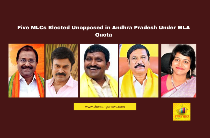 Amaravati: The election for five Member of Legislative Council (MLC) seats in Andhra Pradesh, under the MLA quota, concluded without a contest as only five candidates entered the race. With the nomination withdrawal deadline passing on Thursday evening, Returning Officer R. Vanita Rani officially announced the winners and presented them with election certificates.