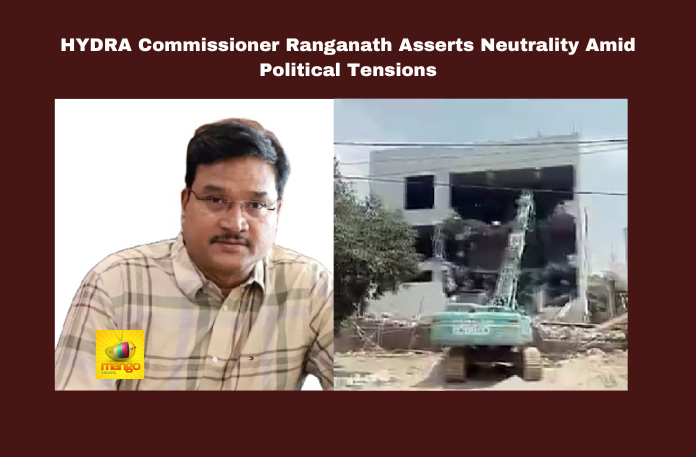 Hyderabad: HYDRA Commissioner Ranganath has made a strong statement, emphasizing that the agency will not be used as a tool in political disputes. In a press briefing, Ranganath addressed concerns raised by various political figures and stated, “HYDRA does not want to become a pawn in the political chess game. Owaisi and Mallareddy are prominent figures, but we prioritize the future of students.” He acknowledged that there might have been errors in constructing college buildings on encroached lands, such as ponds, but stressed that the future of students is a higher priority.