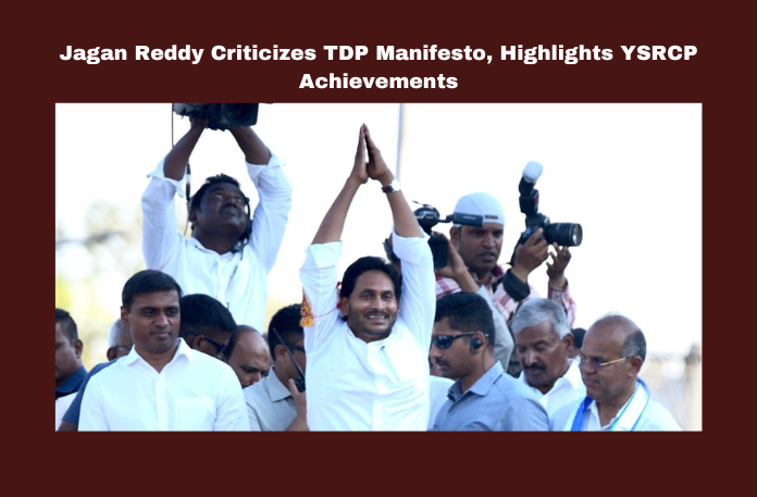 Jagan outlined YSRCP’s achievements, including job creation and welfare schemes, contrasting them with TDP’s failures. He pledged to continue these initiatives if re-elected, highlighting schemes like Rythu Bharosa and women empowerment programs.