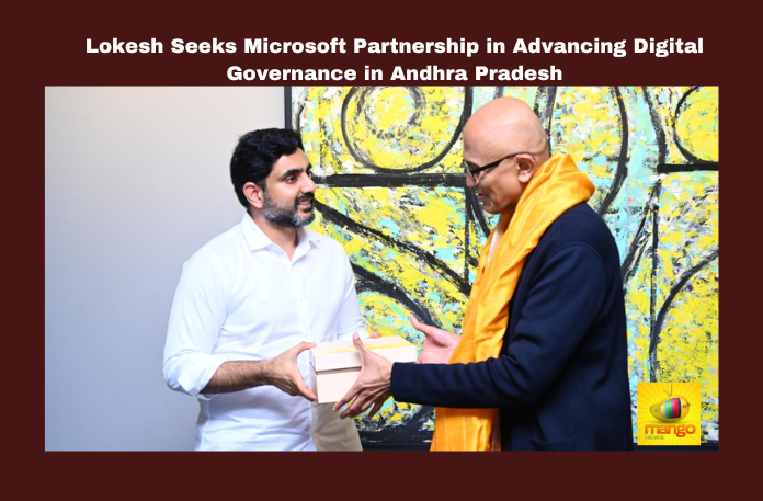 Redmond: Andhra Pradesh’s Minister for IT and Electronics, Mr. Nara Lokesh, has sought collaboration with Microsoft CEO Mr. Satya Nadella to drive digital governance initiatives in Andhra Pradesh. On his US visit to attract tech investment, Mr. Lokesh met Mr. Nadella at Microsoft’s headquarters in Redmond, Washington, and invited him to visit Andhra Pradesh, emphasizing the CEO’s personal connection to the state.