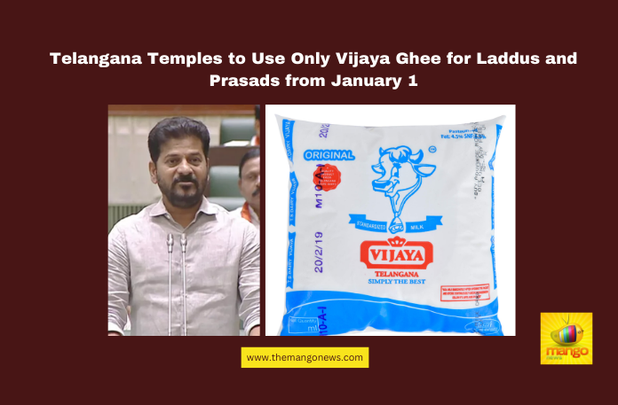 Hyderabad: In a landmark decision, the Telangana State Department of Taxation has mandated the exclusive use of Vijaya Dairy’s ghee in all temples across the state for preparing laddus and other prasads. Effective January 1, 2024, temple authorities have been instructed to cancel existing ghee supply contracts with private entities to comply with this directive.