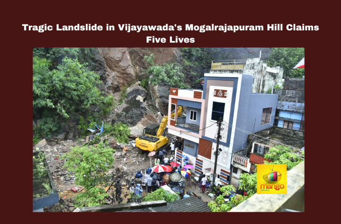 Vijayawada: A devastating landslide in the Mogalrajapuram hill area of Vijayawada on Saturday morning claimed the lives of five individuals, leaving three families in mourning. The victims were identified as Navud Meghna (25), Polam Lakshmi (49), Purkati Lalu (38), Santosh (30), and Jampana Annapurna (55).