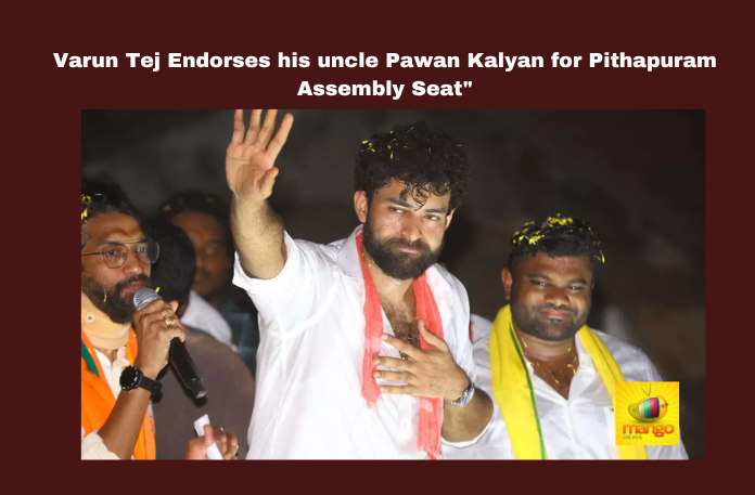 Gollaprolu: Actor Varun Tej voiced his support for his uncle, Pawan Kalyan, urging voters to elect him to the Assembly from Pithapuram. Varun Tej embarked on a roadshow across several villages in the Gollaprolu mandal on Saturday, rallying for Janasena candidate Pawan Kalyan.