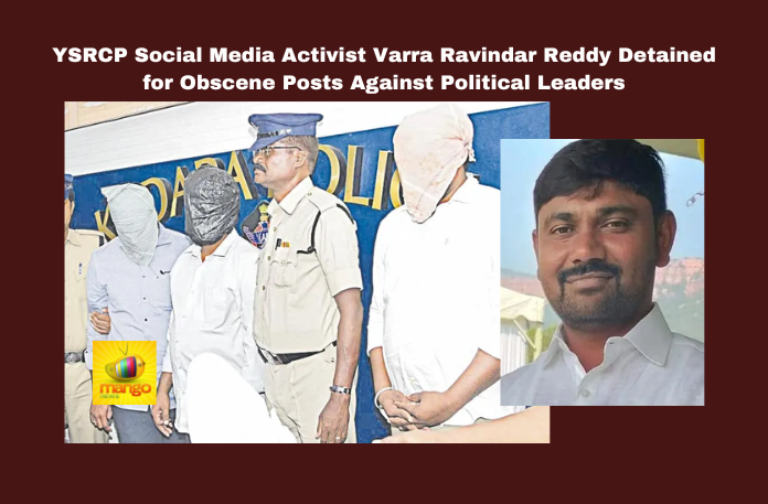 Kadapa: Varra Ravindar Reddy, a social media activist from Pulivendula in YSR district, known by the moniker “Social Media Psycho,” has been detained by police for posting offensive content against prominent Andhra Pradesh leaders. Reddy, affiliated with YSRCP, reportedly made derogatory posts targeting Chief Minister Chandrababu Naidu, Deputy CM Pawan Kalyan, Ministers Nara Lokesh and Anita, AP Congress President YS Sharmila, and former minister Viveka’s daughter Sunitha.