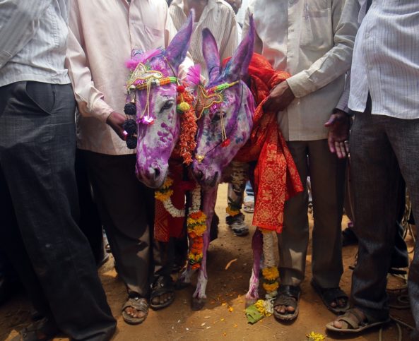 Nagraj also felicitated the couple by touching their feet joined hands with them and even kissed the donkeys. He also requested that Central and State Governments should provide protection to the newly married couple and a law should be passed in regard to protection for couples.