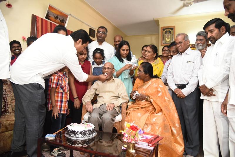 IT Minister K. T. Rama Rao surprised a freedom fighter on his birthday and launched a book written by him. Mitta Yadava Reddy turned 88 and celebrated the day with KTR. The IT Minister also launched the book My Memoirs written by Mitta.