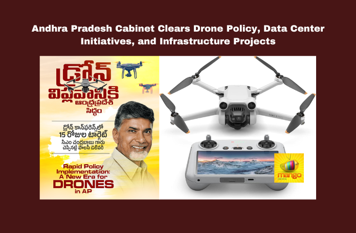 Andhra Pradesh Cabinet Clears Drone Policy, Data Center Initiatives, and Infrastructure Projects, Andhra Pradesh Drone Policy, AP Data Centre Policy, Chandrababu Naidu, Kurnool Drone Hub, AP Infrastructure Development, AP Semiconductor Policy, Land Grabbing Act, Outer Ring Road Project, CRDA Expansion, AP Cabinet Decisions, Andhra Pradesh, AP Live Updates, Live Updates, Breaking News, Headlines, Live News, Mango News