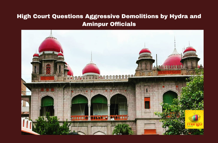 Hyderabad: The Telangana High Court has criticized the hasty demolitions carried out by the authorities in Aminpur, questioning the aggressive actions taken by Hydra and local officials. The court expressed concerns over the demolitions conducted without proper notice, asking, “Do you give notice on Saturday and demolish on Sunday?”