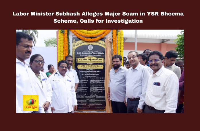 Vijayawada: Labor Minister Vasamshetty Subhash has accused the previous government of a major scam in the YSR Bheema insurance scheme, announcing plans for a detailed investigation with vigilance officials. The allegations were made during the inauguration of the new Vijayawada Gunadala ESI Hospital on Monday.