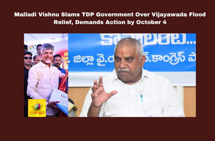 Tadepalli: YSRCP MLA Malladi Vishnu criticized the TDP government for its handling of flood relief efforts in Vijayawada, calling the process a “complete failure.” He demanded that a proper re-enumeration of flood victims be completed by October 4 and urged the state government to pressure the central government to declare the floods a national disaster to secure additional funds.