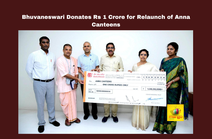 During a ceremony at her residence in Undavalli, Bhuvaneswari handed over the donation cheque to Municipal Administration Minister P. Narayana. She praised the initiative as an “august programme” that addresses the basic need of feeding the hungry at an affordable cost. Bhuvaneswari highlighted that the Anna Canteens are in line with the vision of TDP founder and her father-in-law, the late N.T. Rama Rao, whose mission was to provide food, clothing, and shelter to the poor.